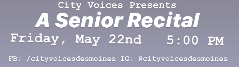 Senior Recital photo May 22 Published May 18, 2020 at 772 × 216 in WELCOME TO CITY VOICES! ← Previous Next → Like Loading...