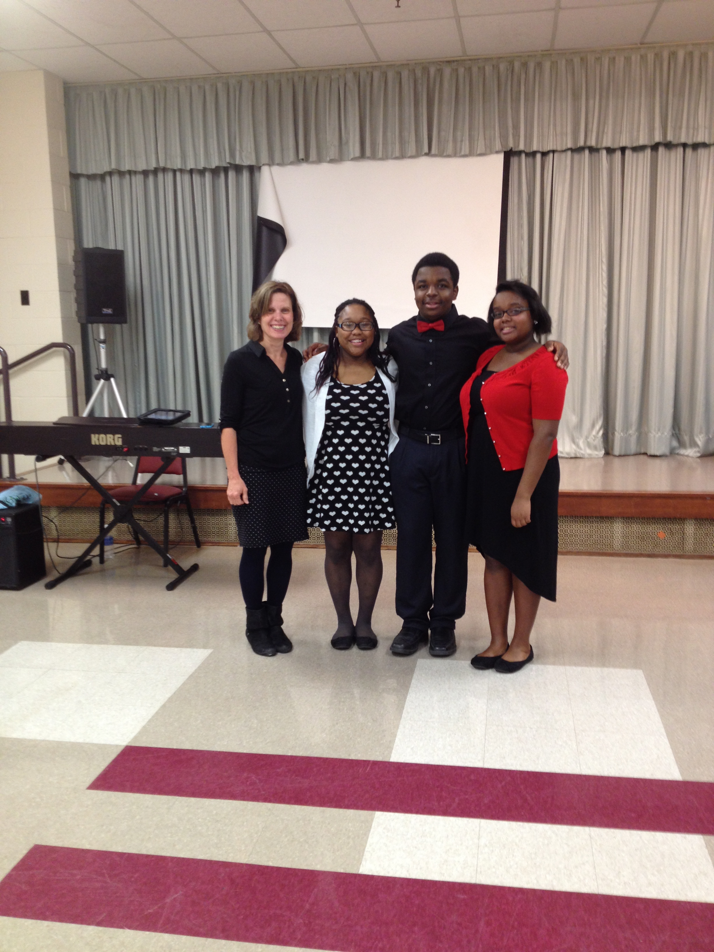 Teaching Artists Larry Moore and Chris Powell and students Heaven Booker and Kendall Bruce backed up Tony-winning singer Leslie Odom, Jr. at the 2016 World Food Prize ceremony.