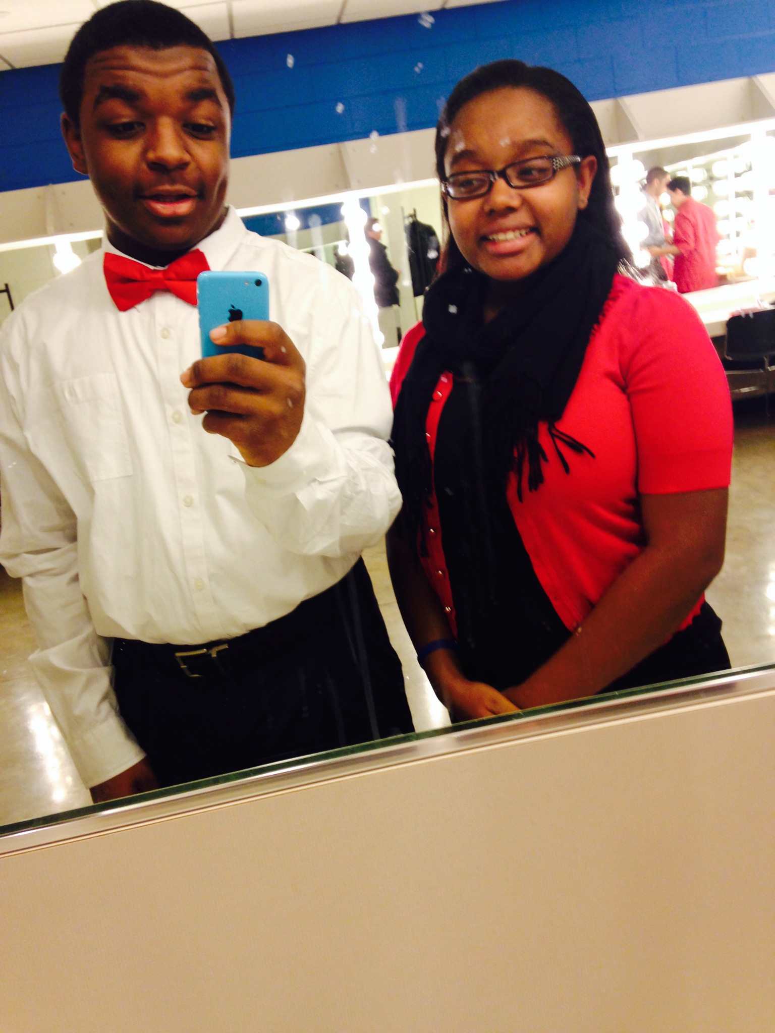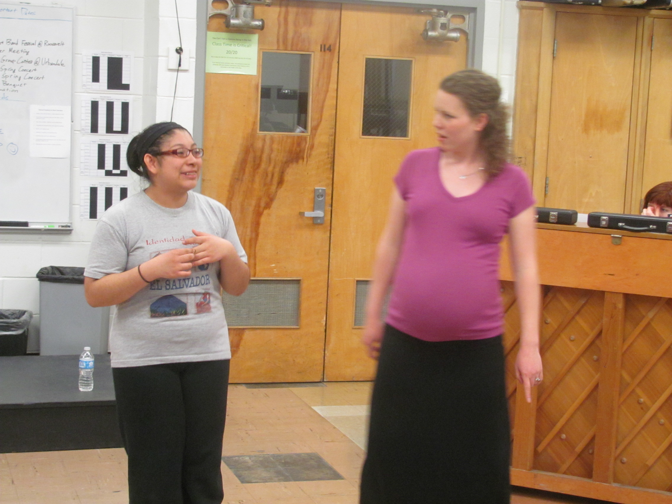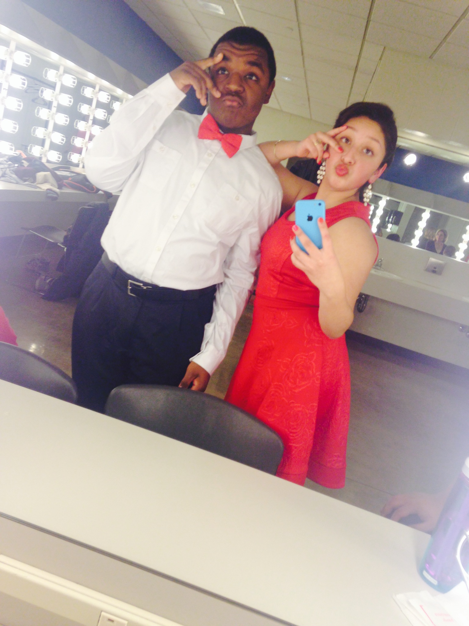 Tiffany Koger (Roosevelt, 11), as Dragon, and Demarius Fisher (Roosevelt, 11), as Donkey, in Roosevelt’s “Shrek:the Musical” November 2015.
