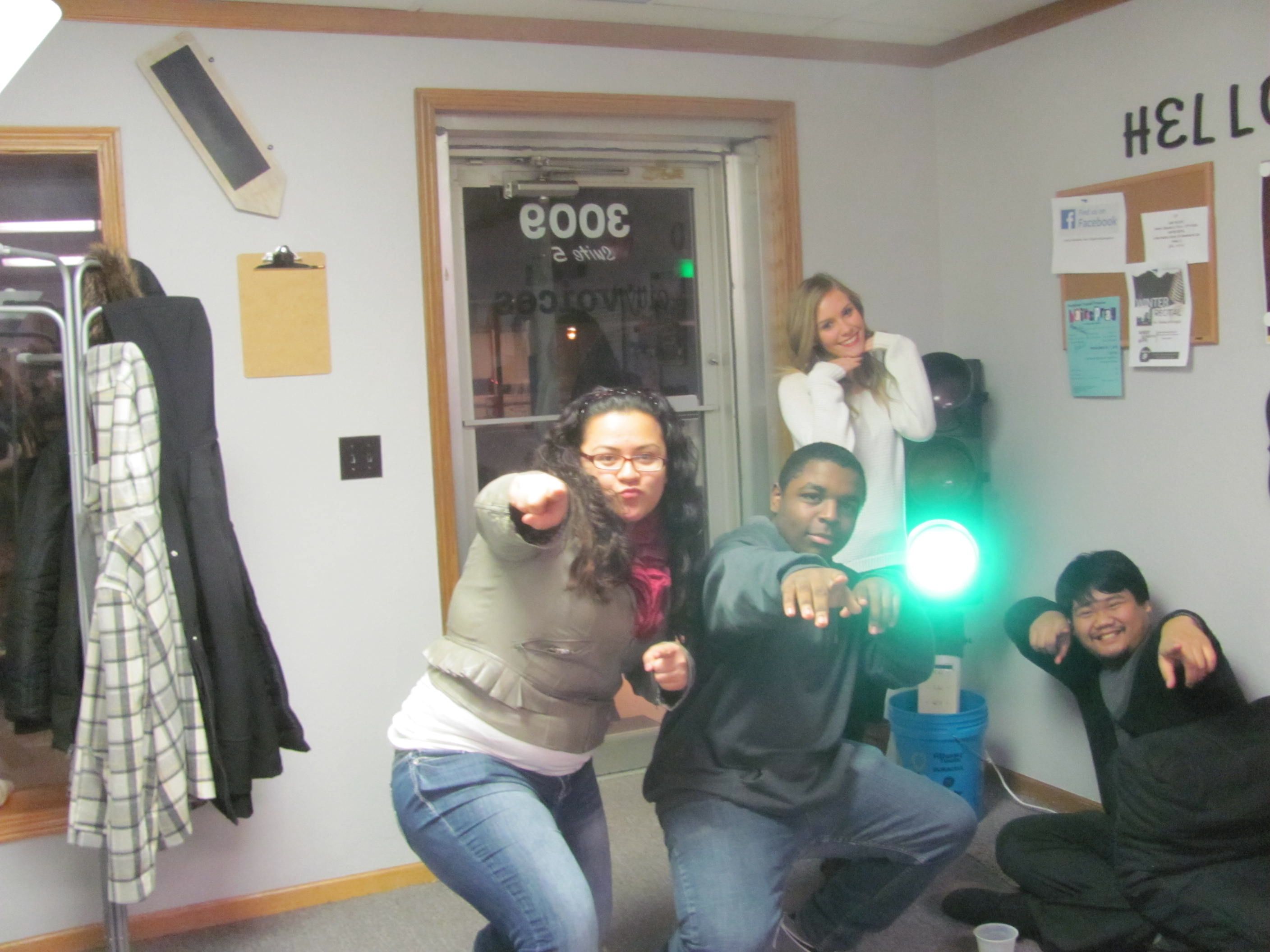 A very popular piece of pizza (Daniela Ortiz, Michael Xayavong, and Kevin Padilla, all North High School students.)