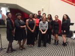 City Voices students sang carols in the Civic Center lobby prior to the Iowa Dance Theater’s production of “The Nutcracker” in December 2017. Students then received free tickets to attend the show, and a backstage tour. Pictured are Esther Ubadigbo (Roosevelt, 10), Damaris Nelson (East, 10), Antonesia Williams (East, 11), Heaven Booker (Roosevelt, 12), Ben Harper (Roosevelt, 12), LB Rivera (Roosevelt, 12), Kendall Bruce (Roosevelt Graduate), Aaliyah Fenceroy (Roosevelt, 12), and Tatum Clayburn (Roosevelt, 12).