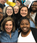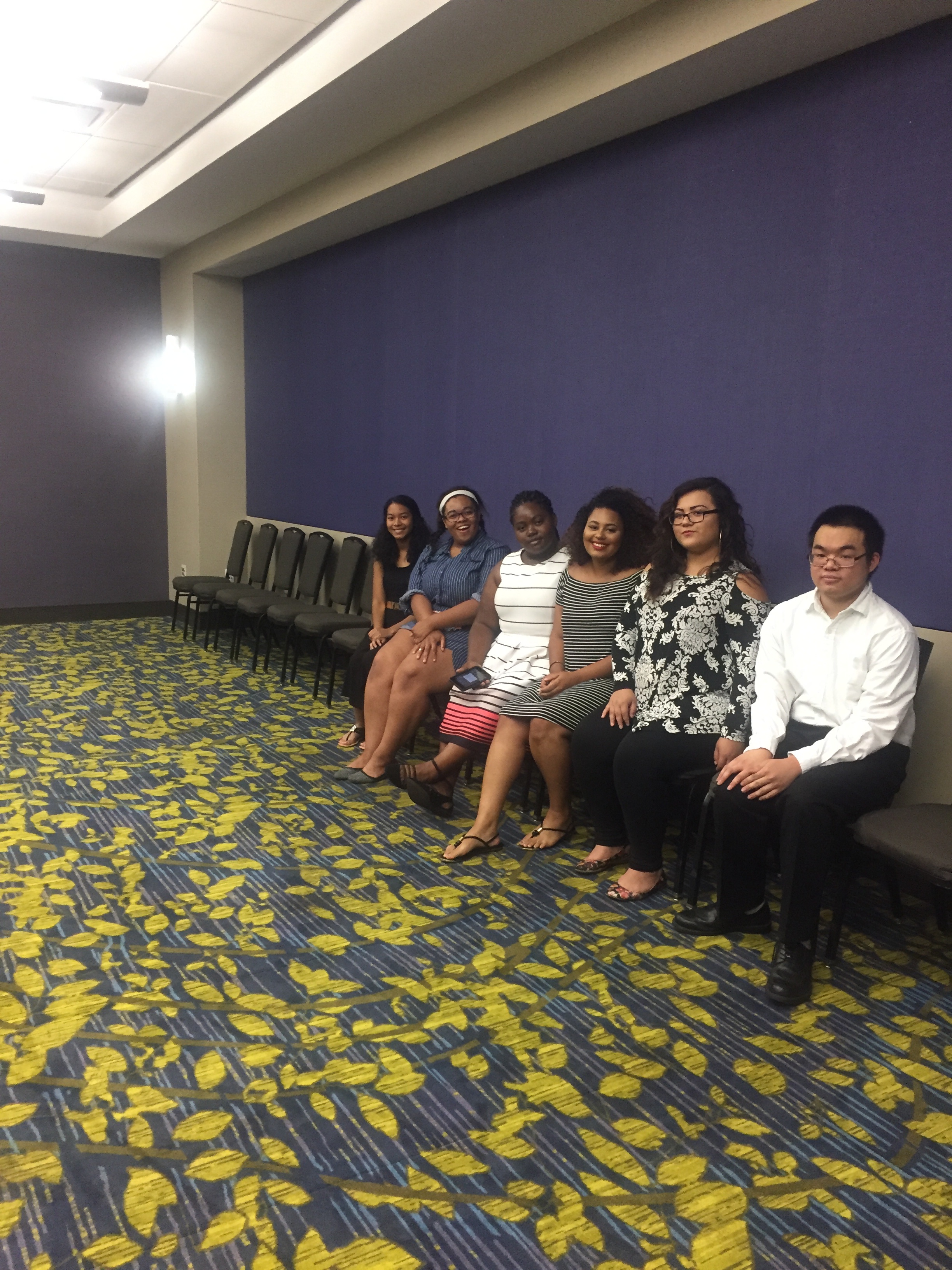 City Voices students sang an a cappella version of the Star Spangled Banner at the annual Hall of Fame Dinner in Des Moines, July 2017. Pictured are Terry Nguyen (Hoover, graduate), Daniela Ortiz (North, graduate), Kendall Bruce (Roosevelt, graduate), Damaris Nelson (East, 10), Heaven Booker (Roosevelt, 12) and Alexa Pinos (Roosevelt, 11).