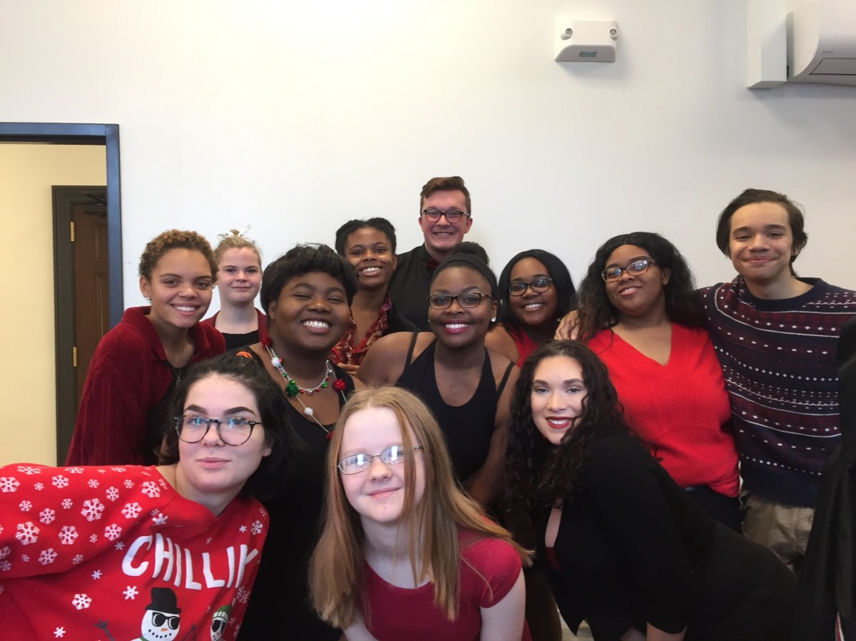City Voices students provided music for The Tea Room’s “Breakfast With Santa” in December 2017. Pictured are Max Dressic (North, 9), Taryn Cook (Brody, 6), Tatum Clayburn (Roosevelt, 12), Damaris Nelson (East, 10), Antonesia Williams (East, 11), Heaven Booker (Roosevelt, 12), Aaliyah Fenceroy (Roosevelt, 12), Kaitlyn Carr (Lincoln, 9), Esther Ubadigbo (Roosevelt, 10), Ben Harper (Roosevelt, 12), Melissa Hoffman (Roosevelt, 12), and LB Rivera (Roosevelt, 12)